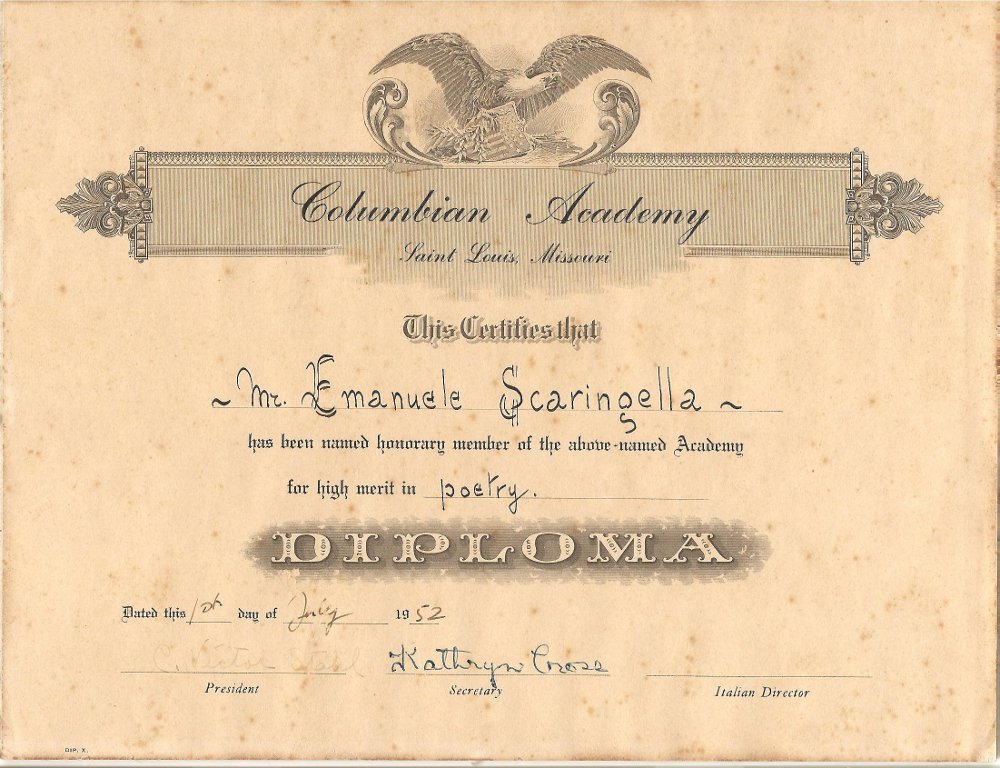 Diploma ottenuto alla "Columbian University" (Saint Louis - Missouri)